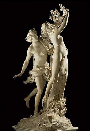 Esta escultura describe la historia de Dafne y Apolo que cuenta Ovidio en sus metamorfosis. Apolo el dios de la luz y la poesía, fue diana de la flecha de amor de Cupido cuando vio a Dafne, hija del Dios rio Peneo consumido por el deseo comenzó a perseguirla