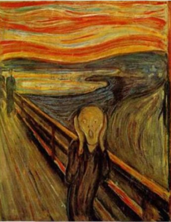 El grito de Edvard Munch tras estudiar arte en Oslo, viajó a Alemania, Italia y Francia. Sus expresivas representaciones de problemas psicológicos llegaron hasta el simbolismo francés e influyeron en gran medida en el expresionismo Alemán titulada originalmente "El grito de la naturaleza". Esta es una de las cuatro versiones del tema producidos por mundo entre 1893 y 1919.
